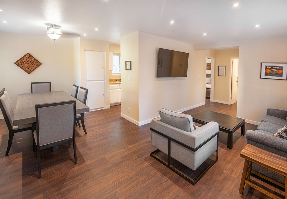 Nostalgic cabins exuding natural charm with all the conveniences of home, including ample kitchen and living room spaces. Sleep up to 8 guests on multiple supremely cozy King / Queen / Bunk options and wake up revitalized to enjoy the nearby Event Lawn and Amphitheater.